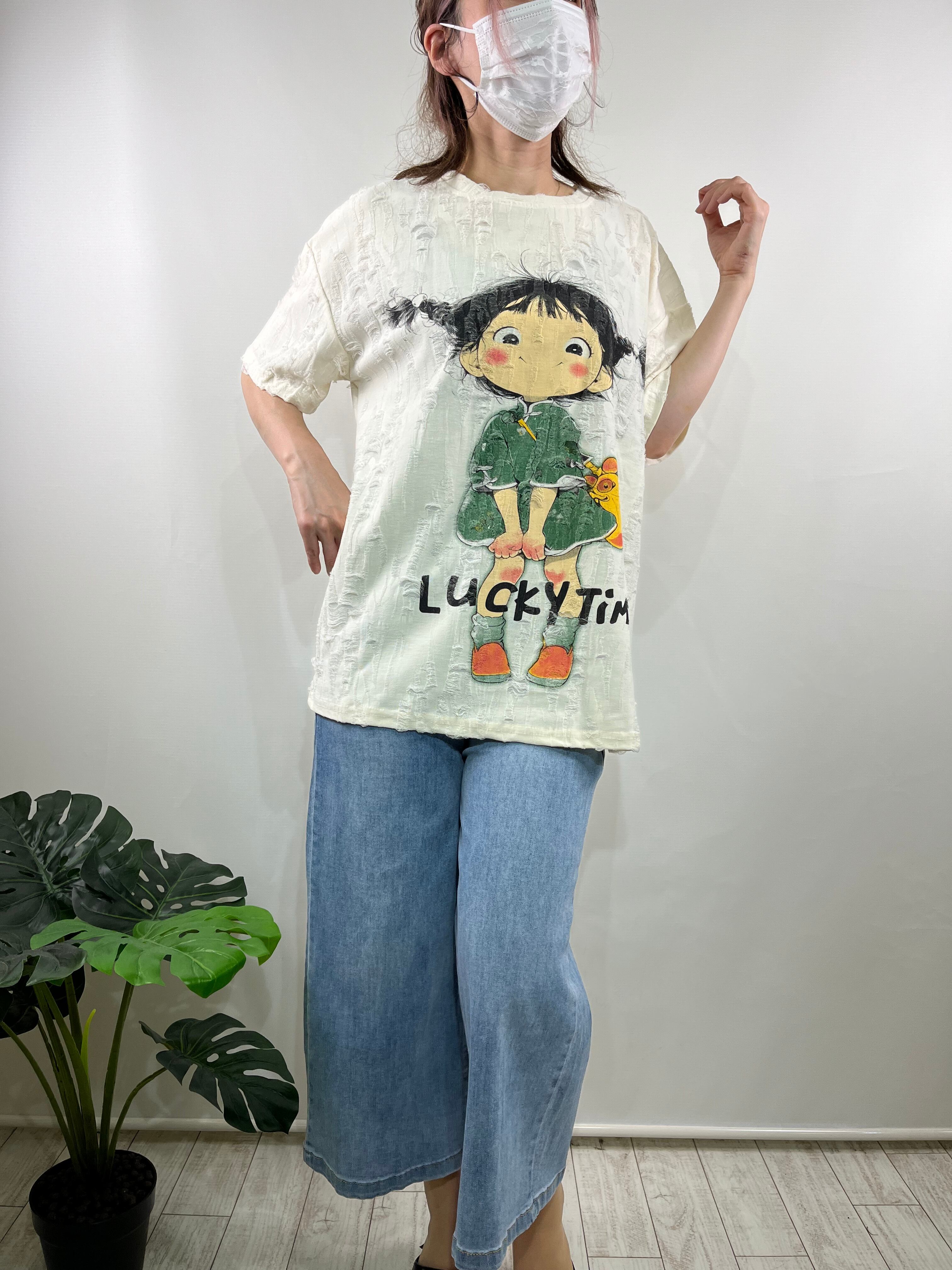 (≧▽≦)☆可愛い三つ編み女の子柄が特徴のブロークン素材TEE!柔らかな風合いが魅力で、カジュアルなコーディネートにもぴったりなアイテムです♪
