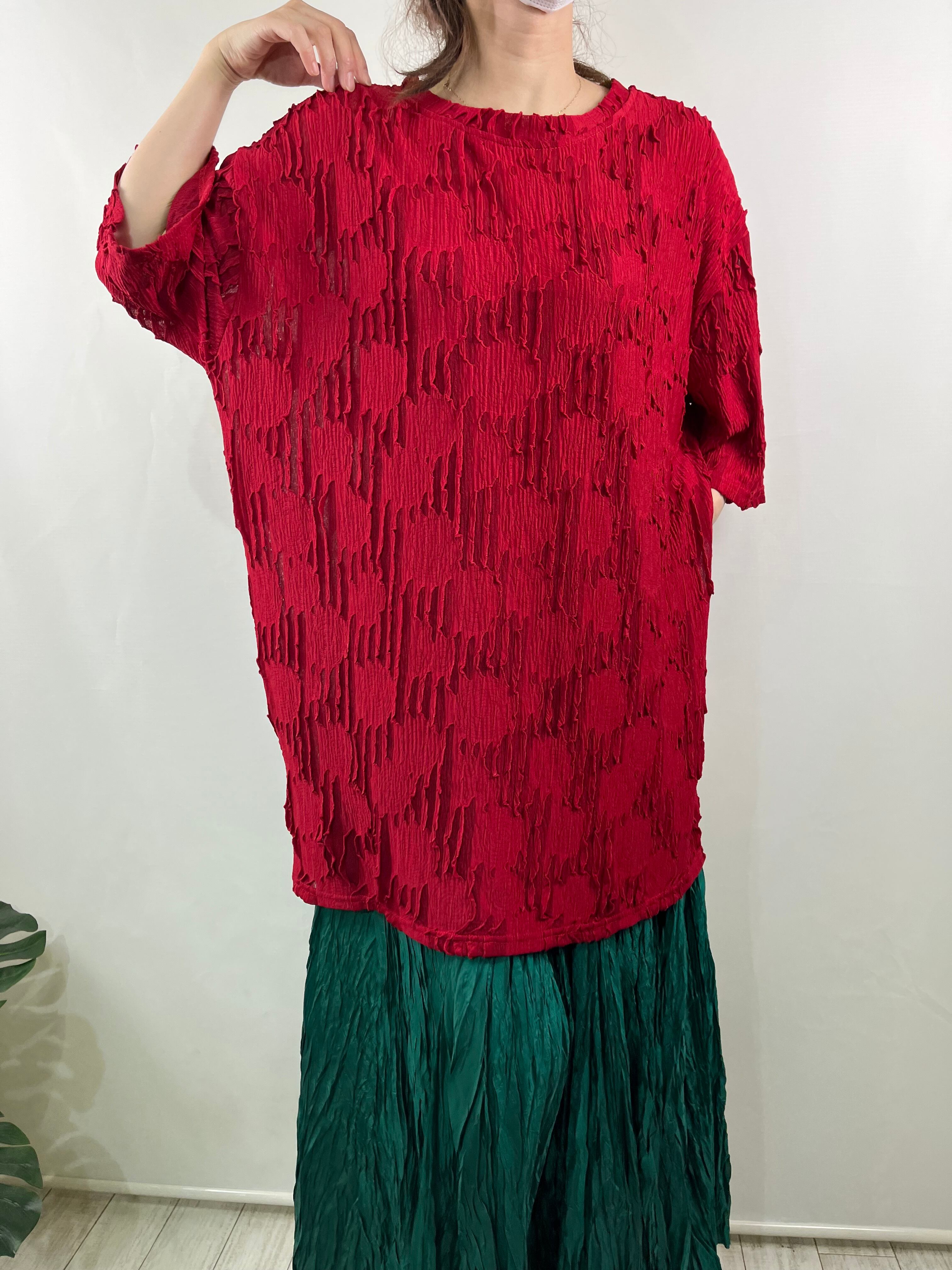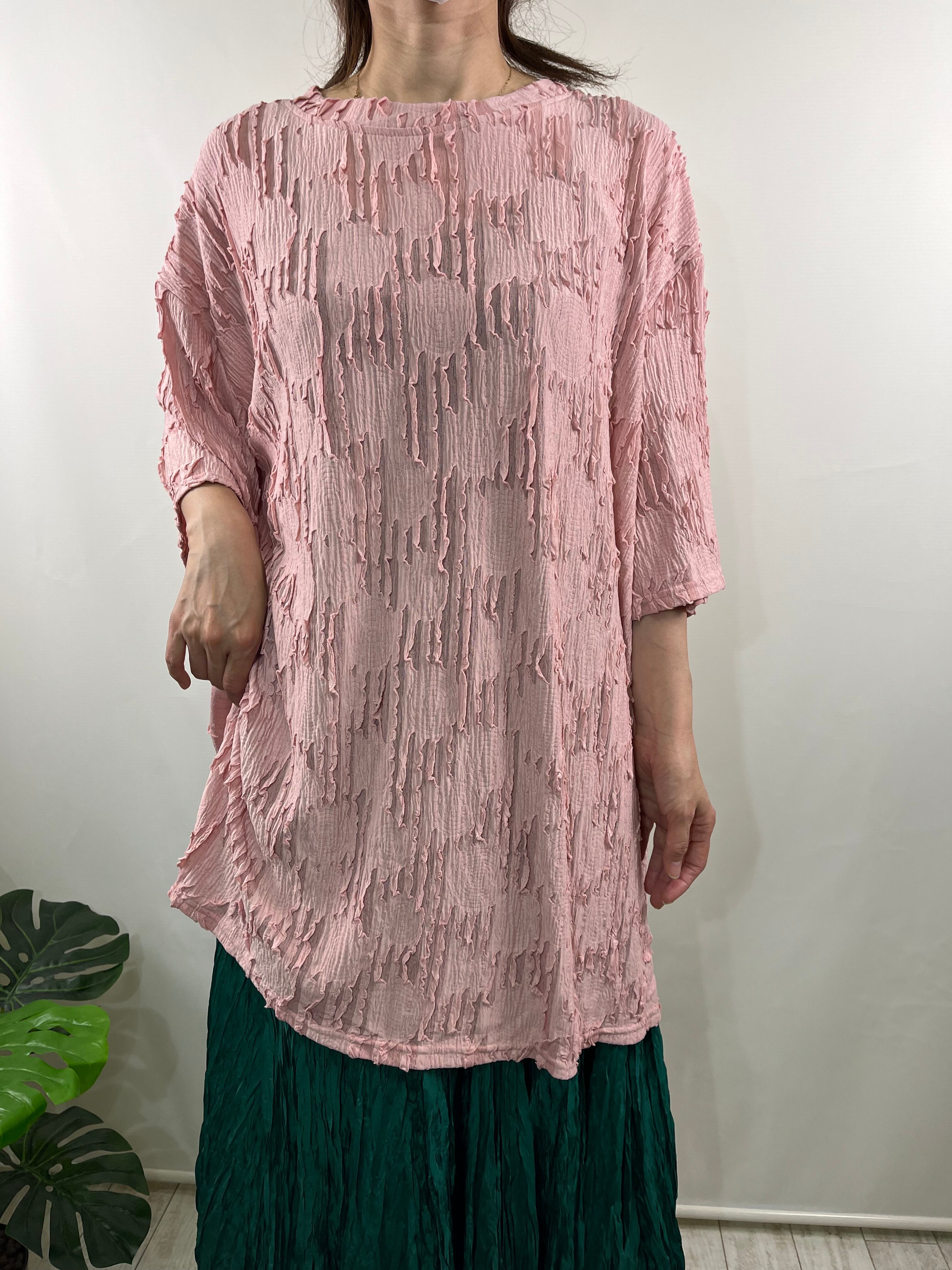 (≧▽≦)☆エレガントなシアージャガード柄が印象的な丈長トップス!さらさらとした素材感が特徴で、洗練されたスタイルを楽しめるアイテムです♪