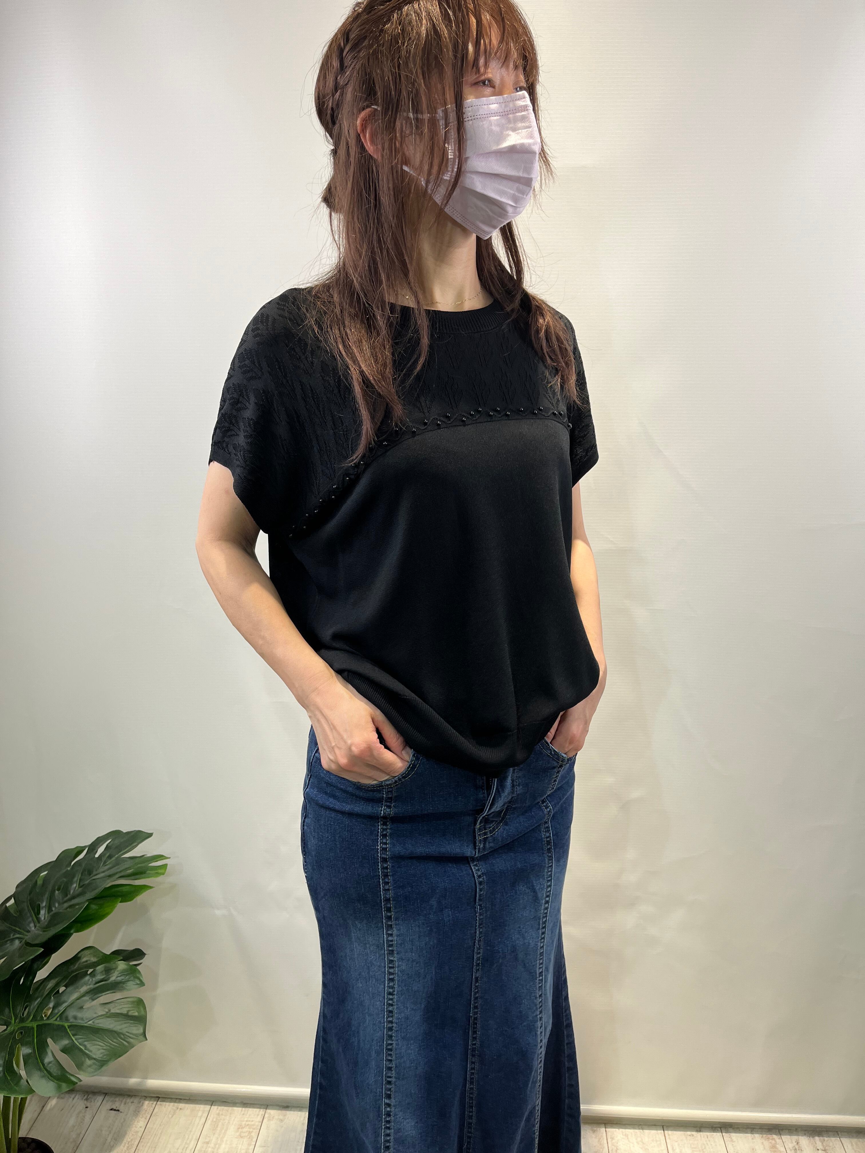 (≧▽≦)☆独特な柄切替とビーズ使いが特徴のサマーニット!さらりとした肌触りで、涼しげな印象を与える一枚です♪