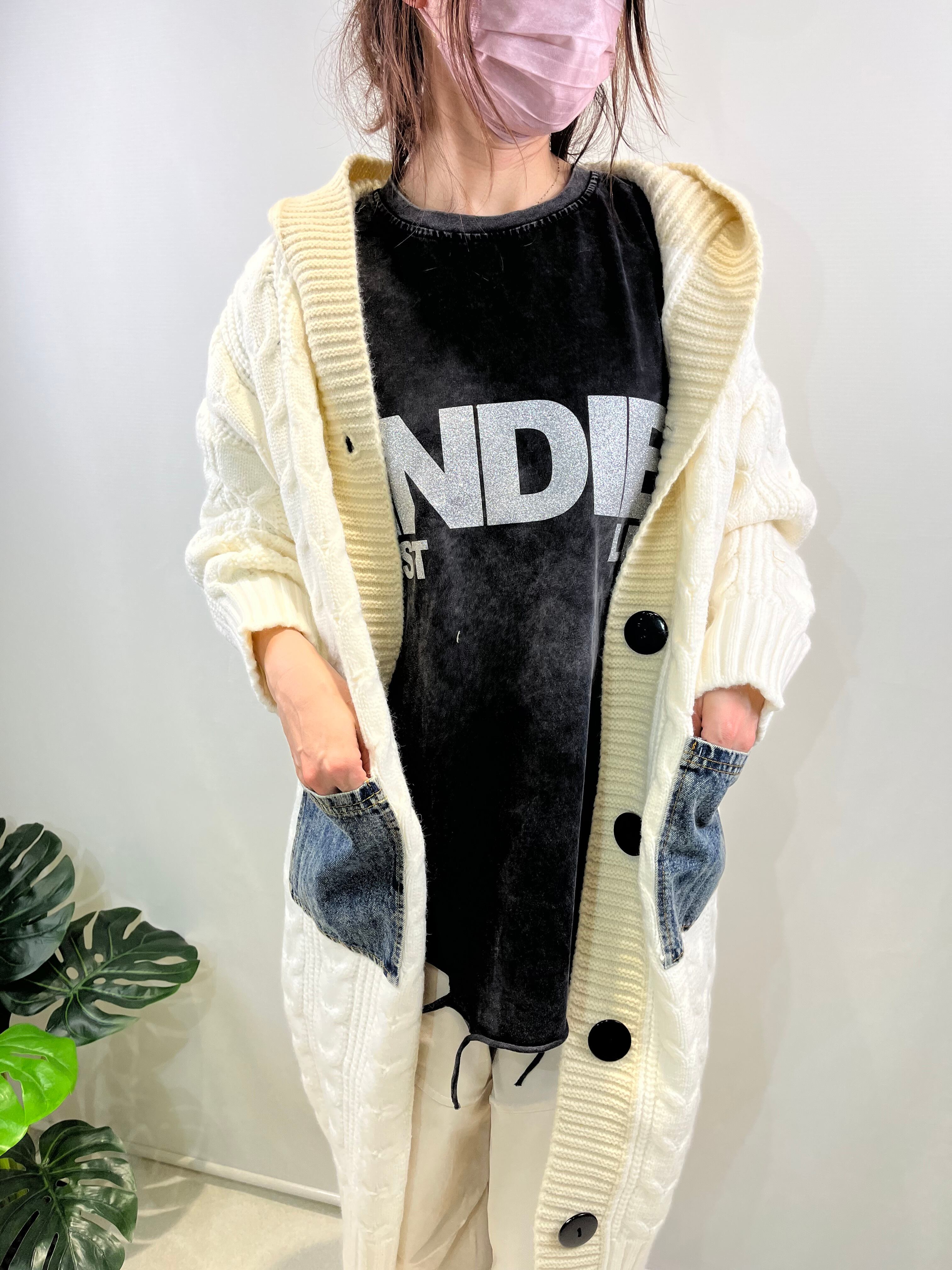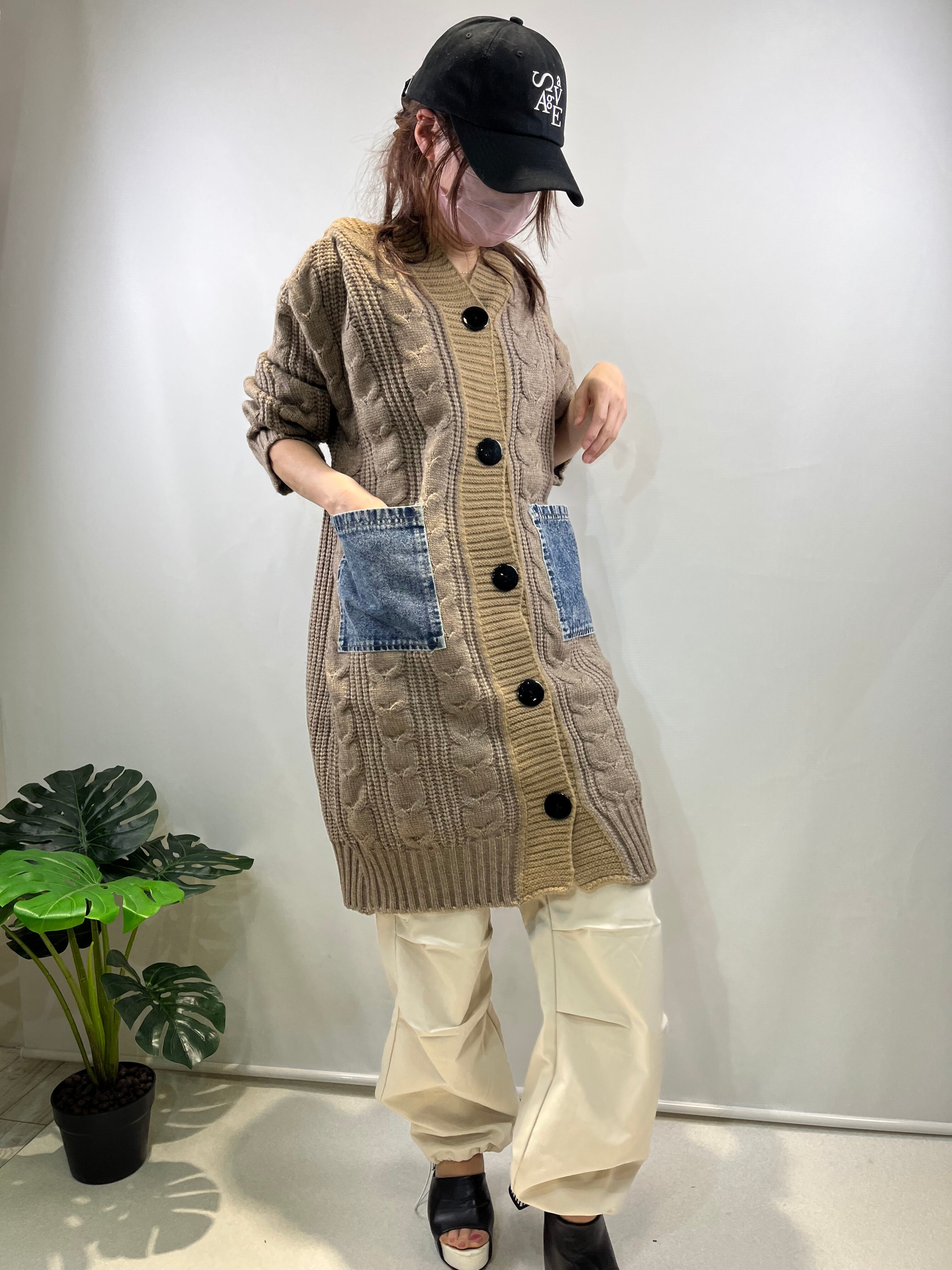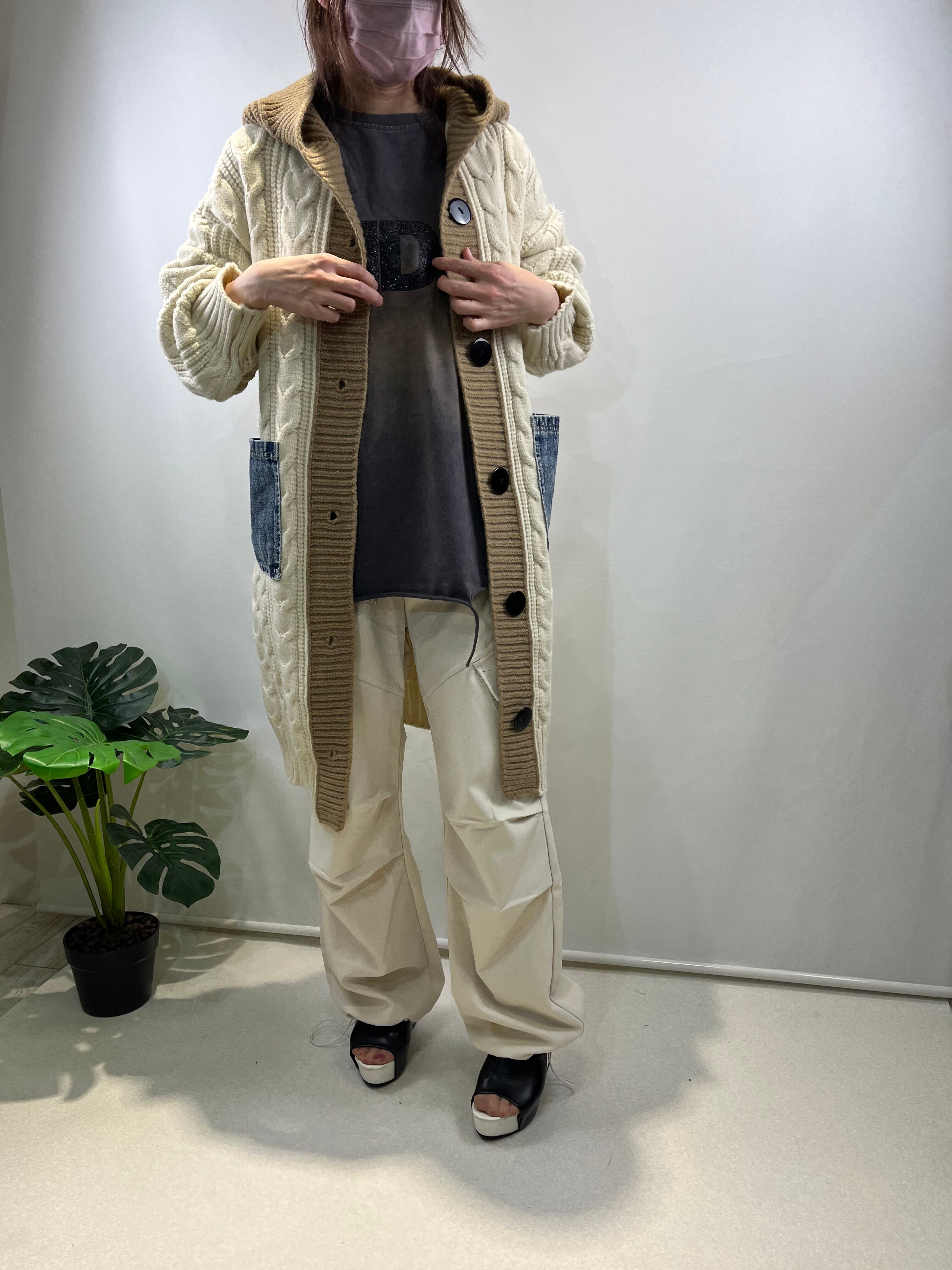 (≧▽≦)☆あぜ編みと配色が特徴のロング丈ニットコート!トレンド感あふれるスタイルが魅力的な一枚です♪