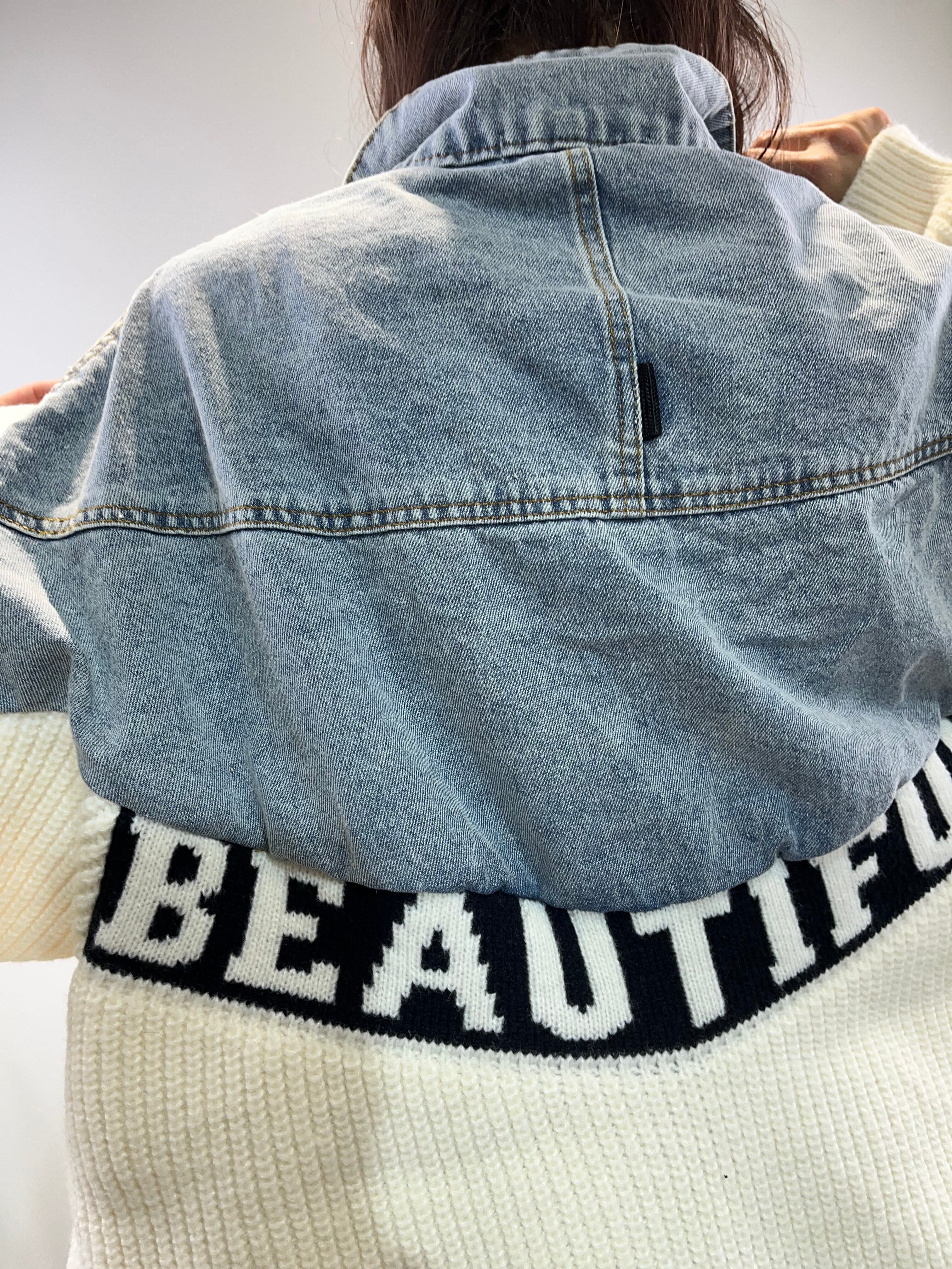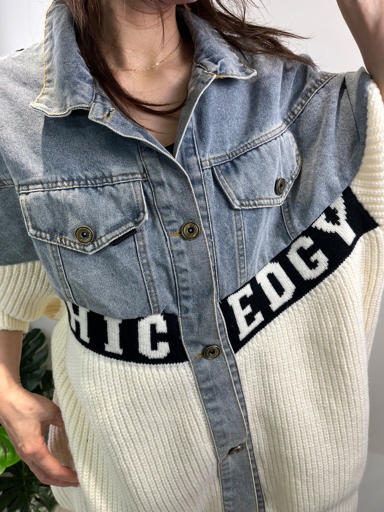 (≧▽≦)☆デニム切替とオーバーサイズが特徴のロゴニットジャケット!トレンド感満載のスタイルが魅力的な一枚です♪