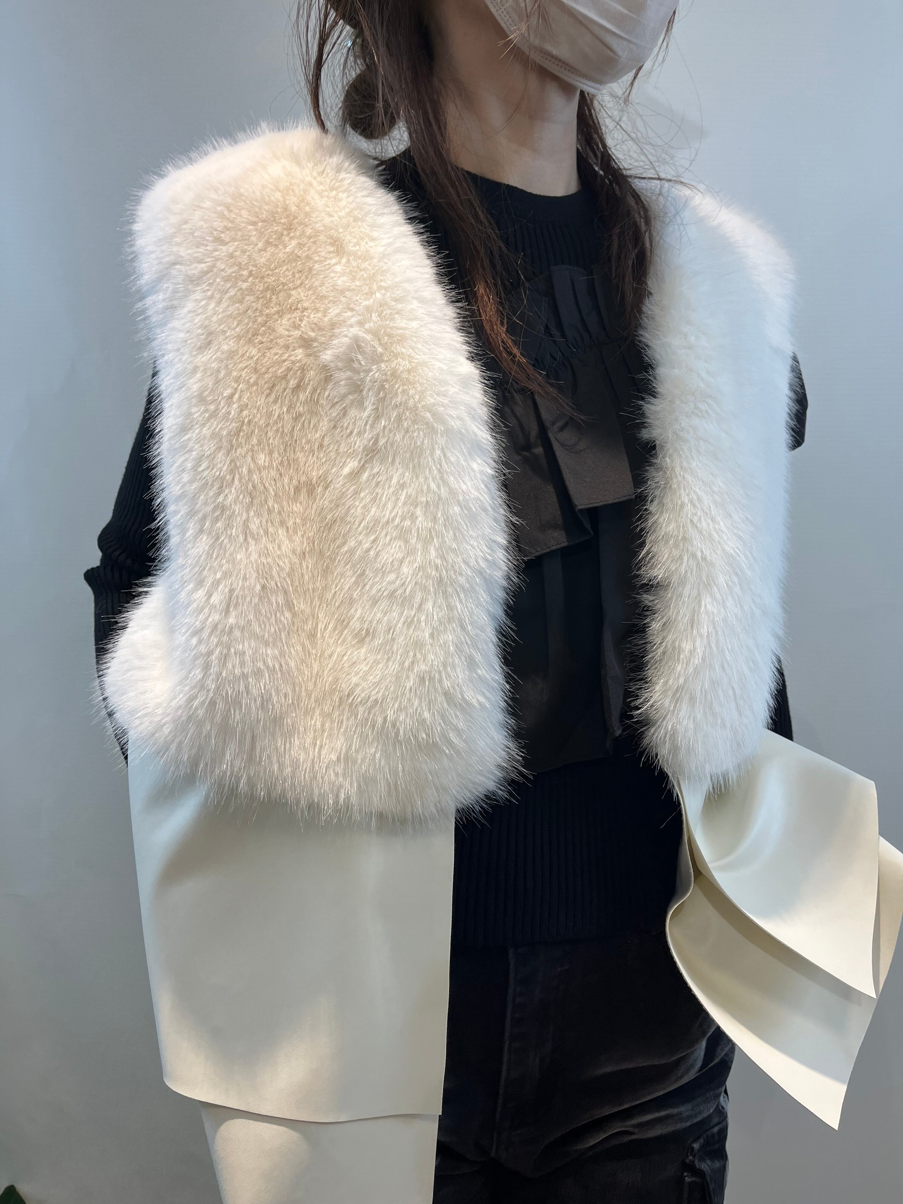 (≧▽≦)☆裾ぺプラムデザインと合皮使いが特徴のファーベスト!トレンド感満載のスタイルが魅力的な一枚です♪
