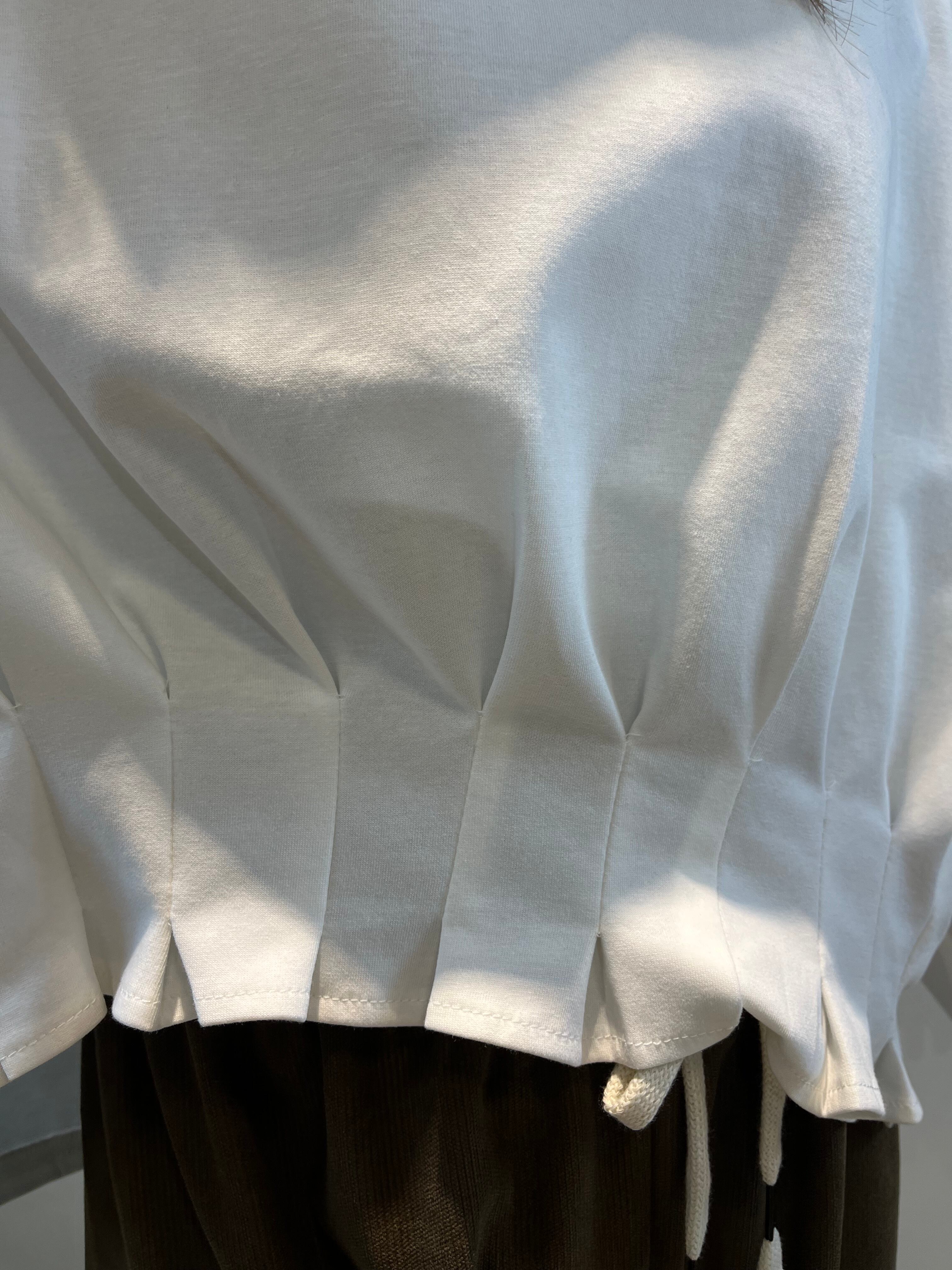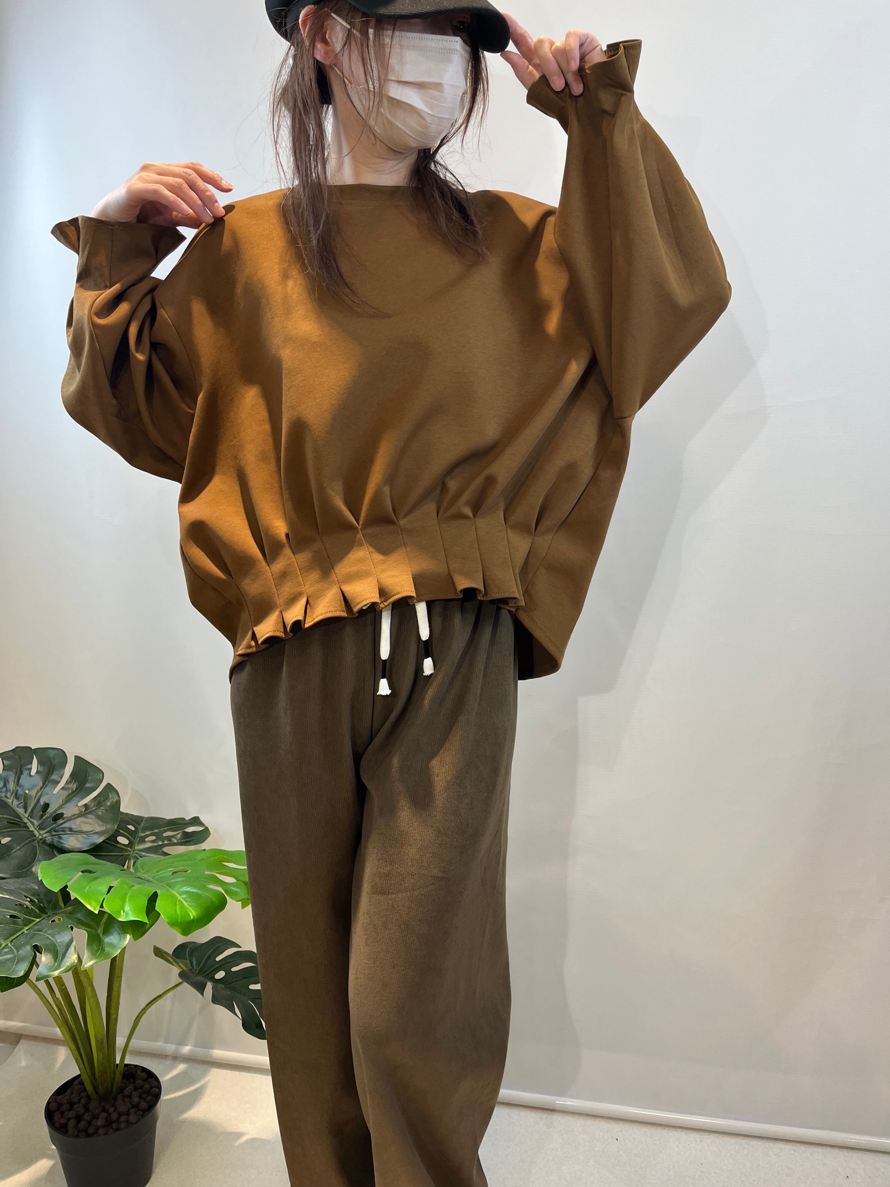 (≧▽≦)☆前上がりのシルエットと袖・裾のタックデザインが特徴のカットソー!洗練されたシルエットとスタイリッシュな印象が魅力的な一枚です♪