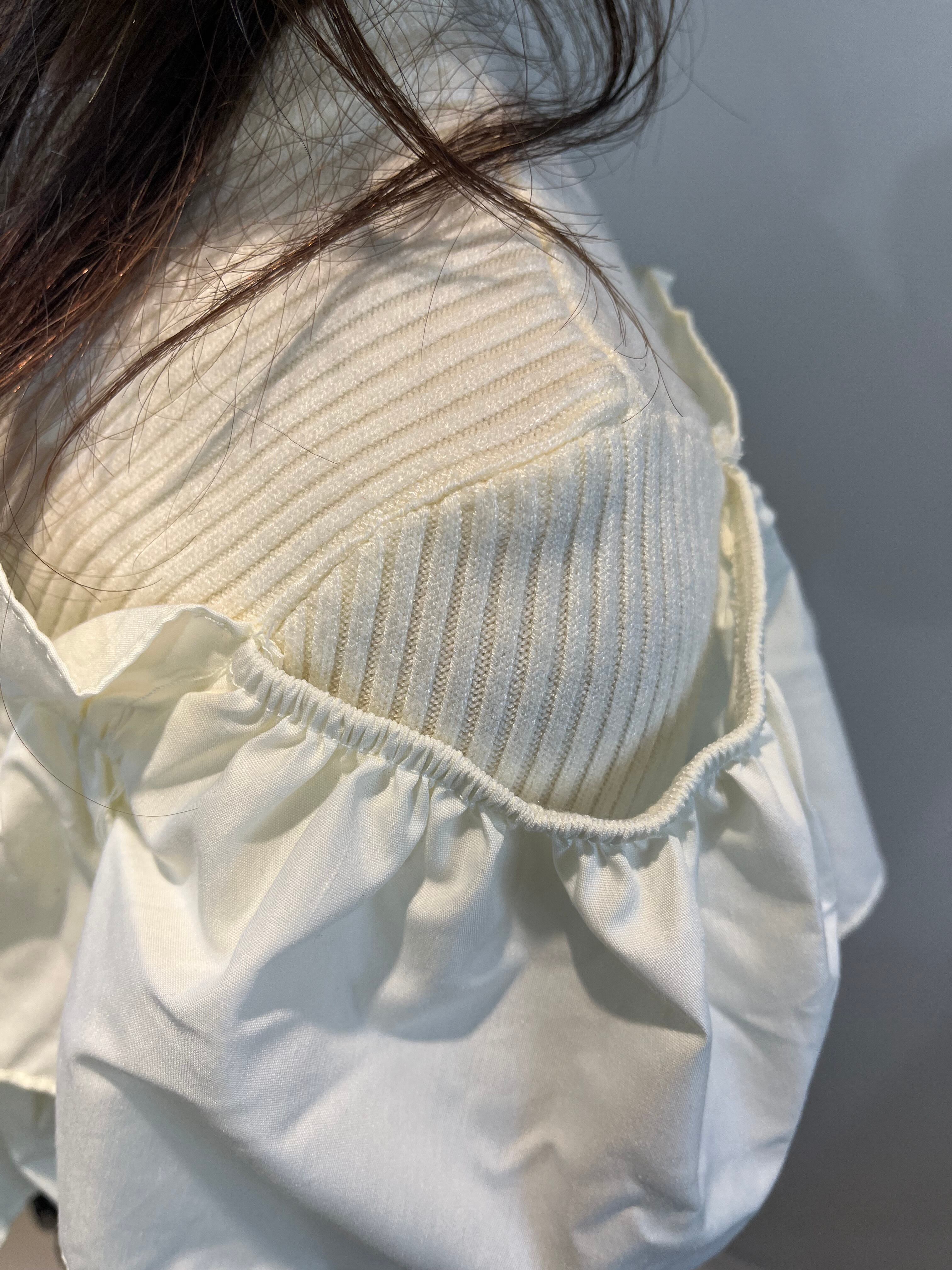 (≧▽≦)☆前後に施された布帛ギャザーフリルが特徴のリブニット!伸びやかな素材感とデザインが魅力のアイテムです♪