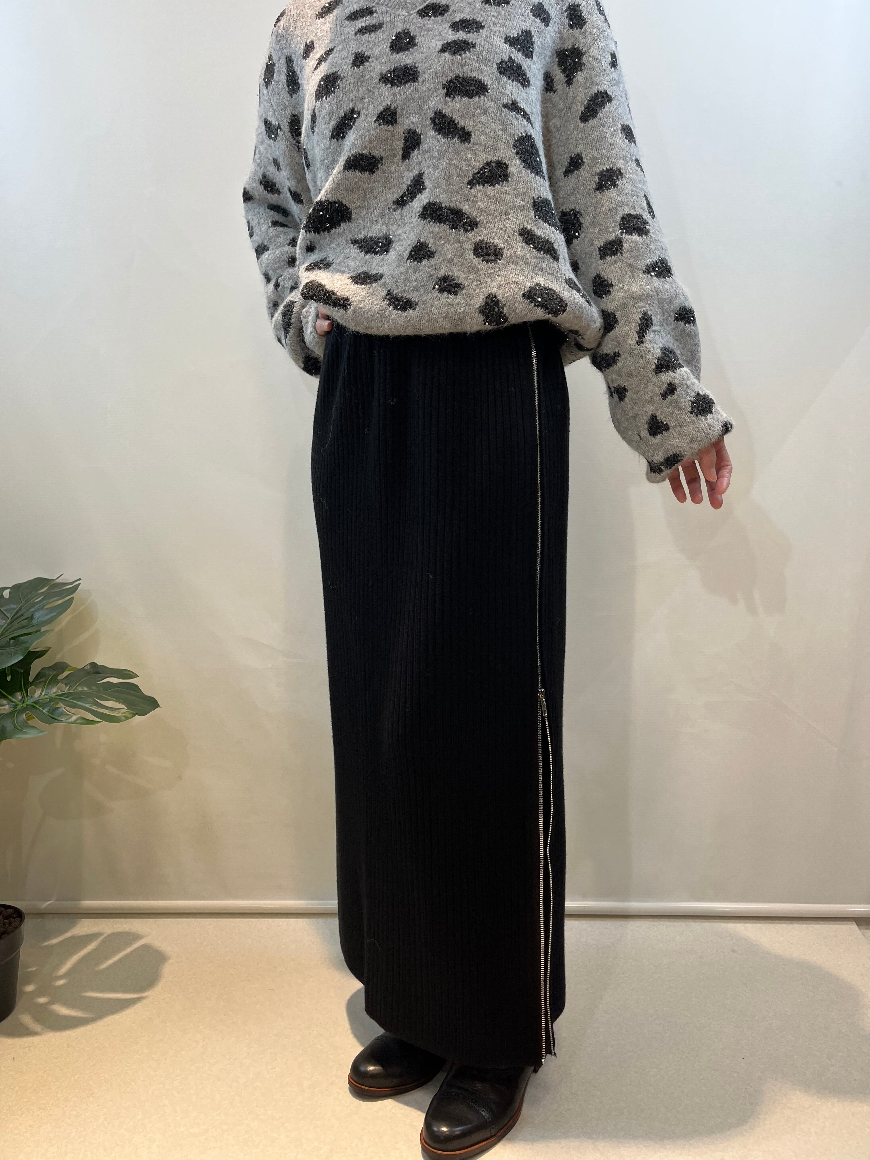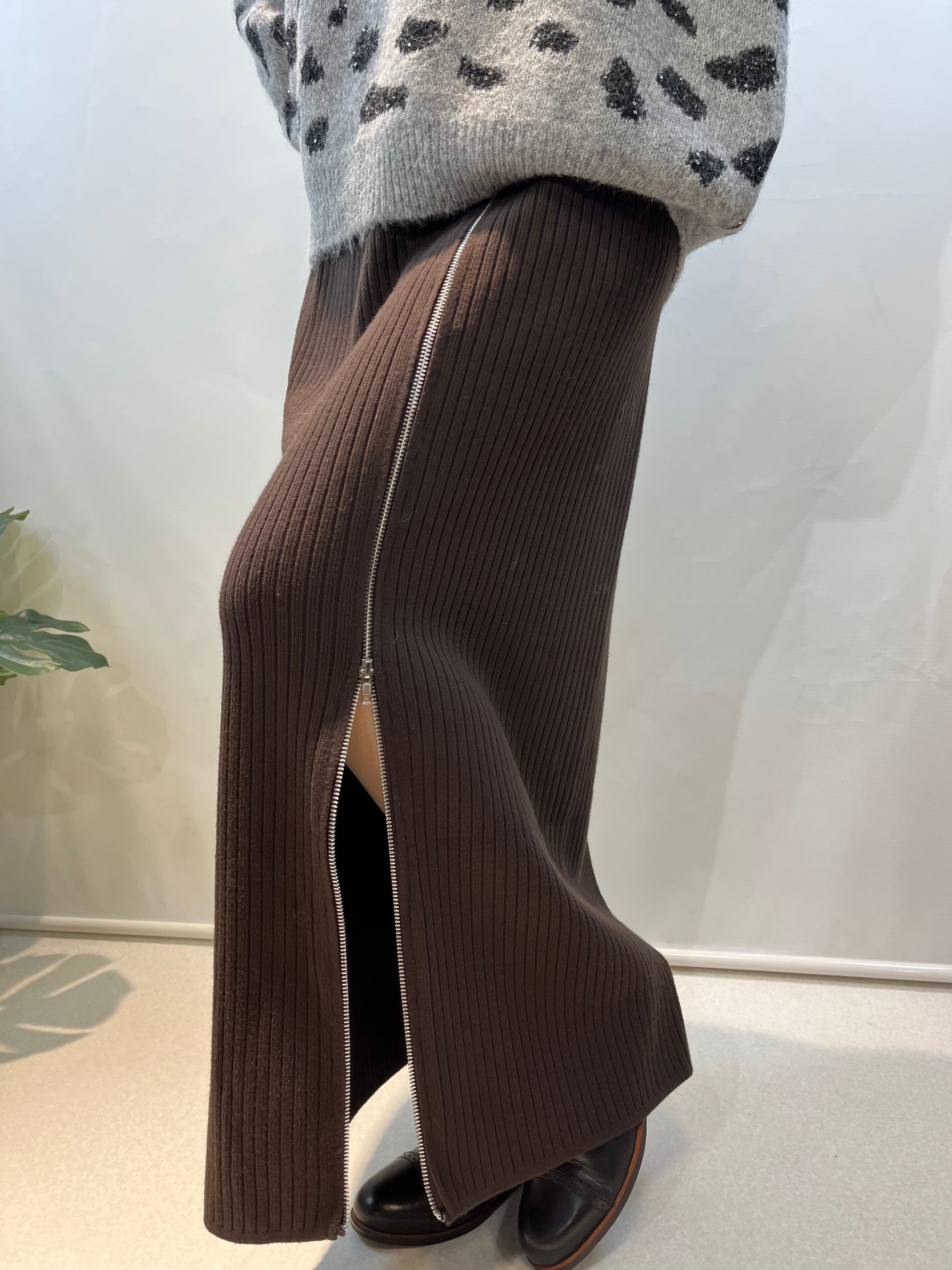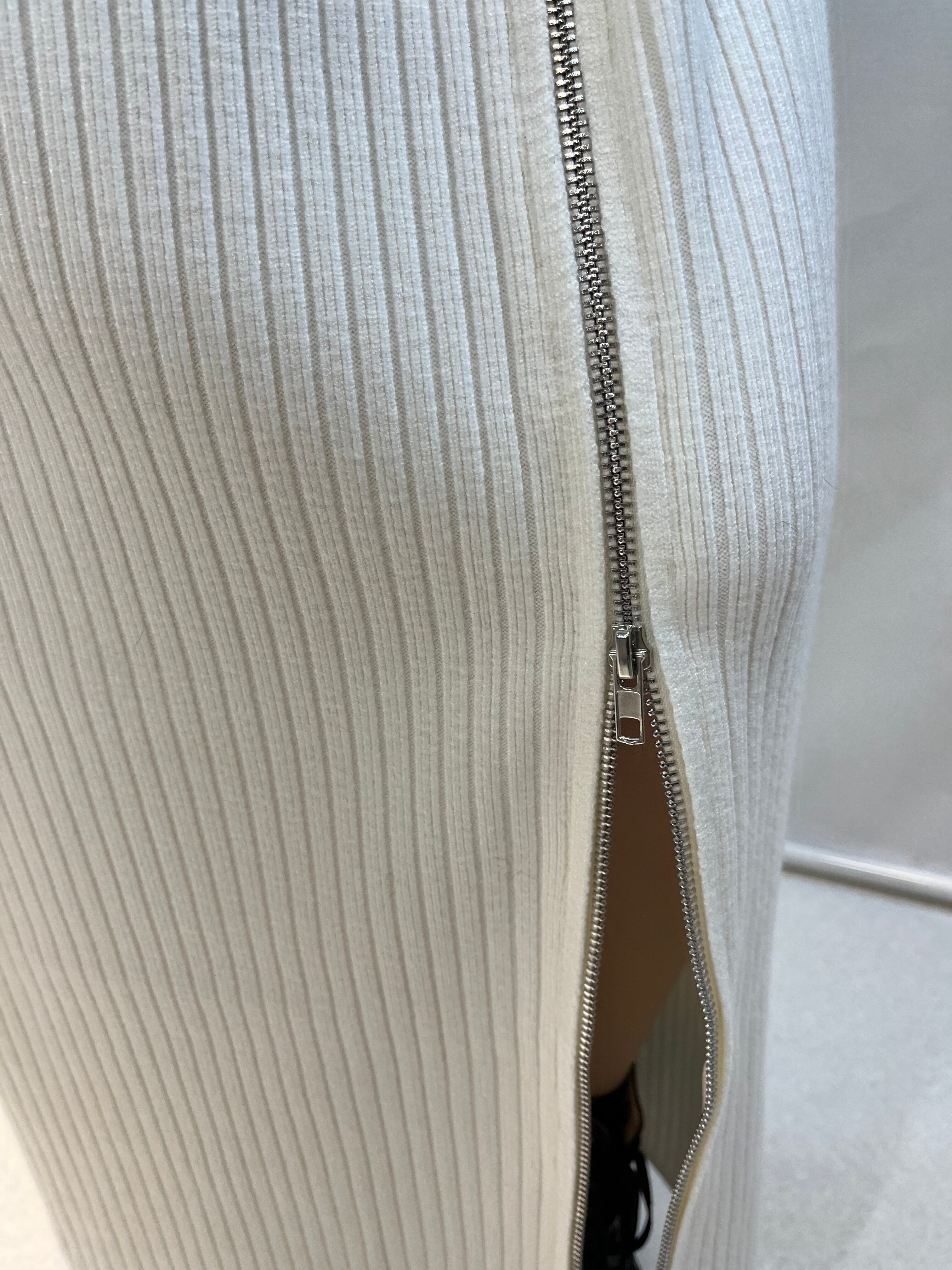 多彩なスタイリングが楽しめるリブニットスカートです!特徴的なzipファスナーによるスリットデザインが、動きやすさとデザイン性を兼ね備えており、好きな位置にスリットを調整できるのが魅力です♪