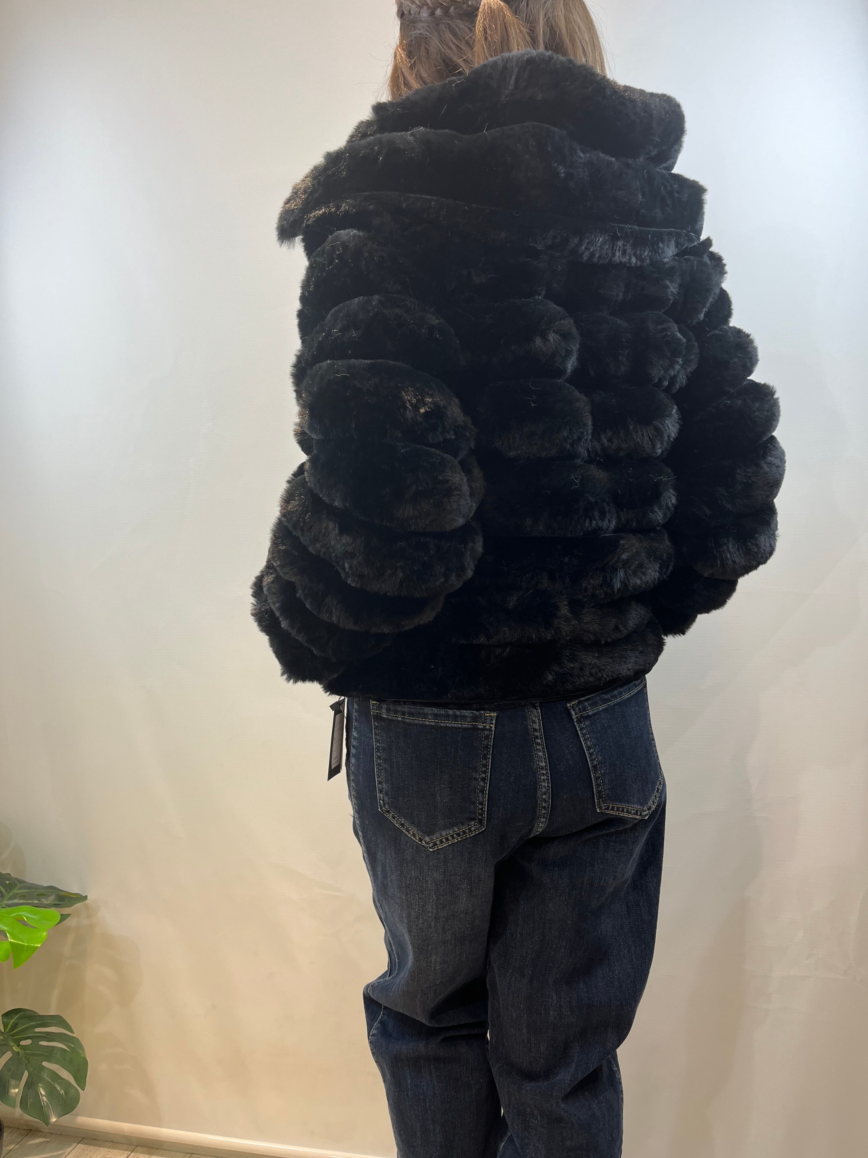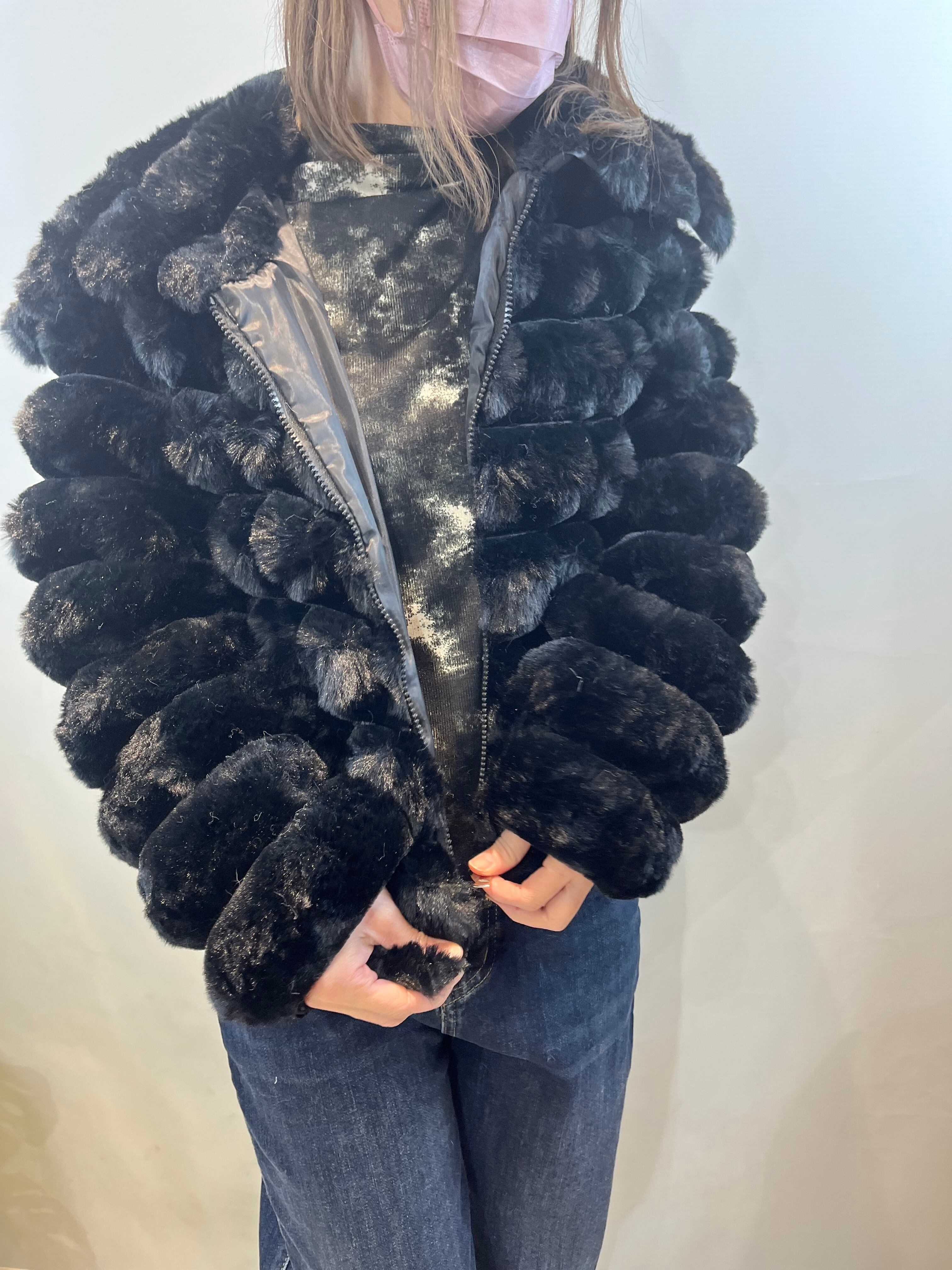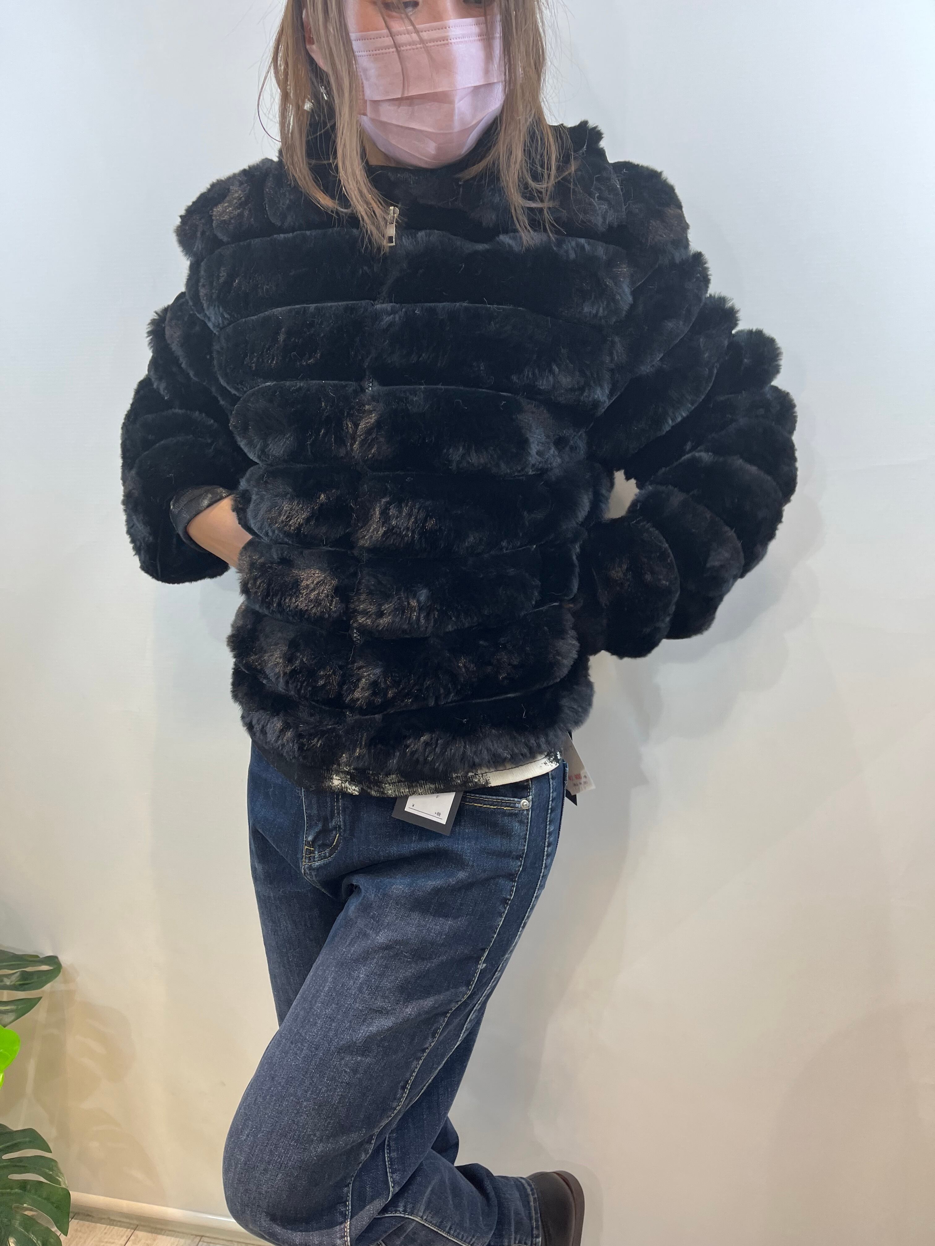 ふわふわのもこもこファーがかわいらしい印象を与える、段々ファージップアップです。短め丈のデザインは、コーディネートを軽快に仕上げるだけでなく、スタイルアップ効果も期待できます! 裏地がしっかりと施されているため、保温性も抜群で、寒い季節にも快適に着用できるアイテムです。